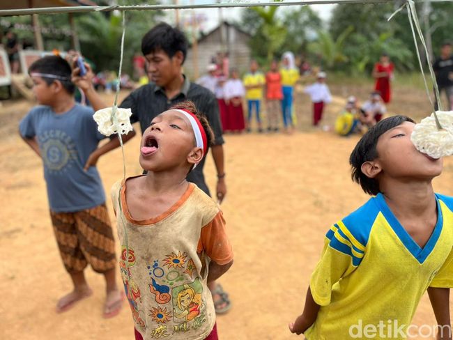Perlombaan digelar usai upacara dan pawai oleh anak-anak Suku Talang Mamak yang bersekolah di Kelas Jauh SDN 167, Dusum Semenrantihan, Suo-suo, Tebo, Sabtu (17/8/2024). Perlombaan ini diikuti oleh anak-anak, pemuda, hingga orang dewasa, yang sudah menunggu dari pagi.