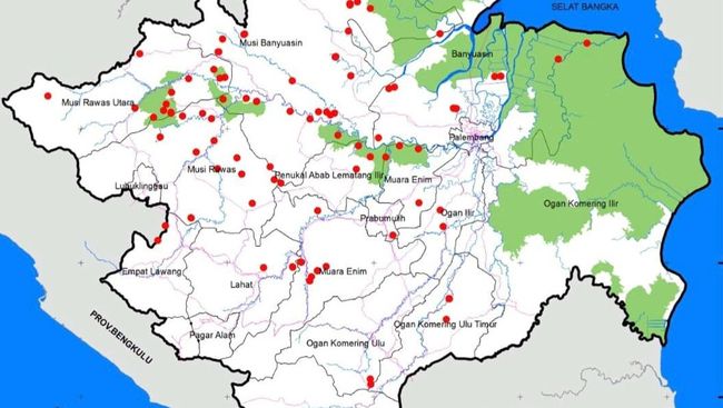 Berikut ini sebaran hotspot di kabupaten/kota di Sumsel: