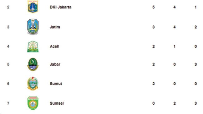5. Jawa Barat: 2 emas, 0 perak 3 perunggu