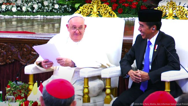 "Beliau (Paus Yohanes Paulus II) berkata, dengan mengakui kehadiran keanekaragaman yang sah, dengan mengakui hak-hak manusia dan politik dari semua warga, dan dengan mendorong pertumbuhan persatuan nasional berlandaskan toleransi dan sikap saling menghargai terhadap orang lain, Anda orang Indonesia meletakkan fondasi bagi masyarakat yang adik dan damai yang diinginkan semua warga Indonesia untuk diri sendiri dan rindu untuk diwariskan kepada anak-anak setelahnya," kata Paus Fransiskus, Rabu (4/9/2024).
