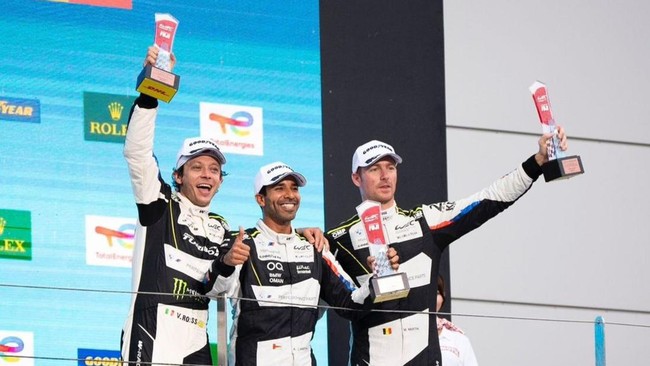 Rossi serta rekan setimnya Maxime Martin dan Ahmad Al Harthy, menempatkan BMW M4 dengan nomor 46 itu di posisi ketiga LMGT3. Mereka finis di belakang Ferrari dan Porsche.