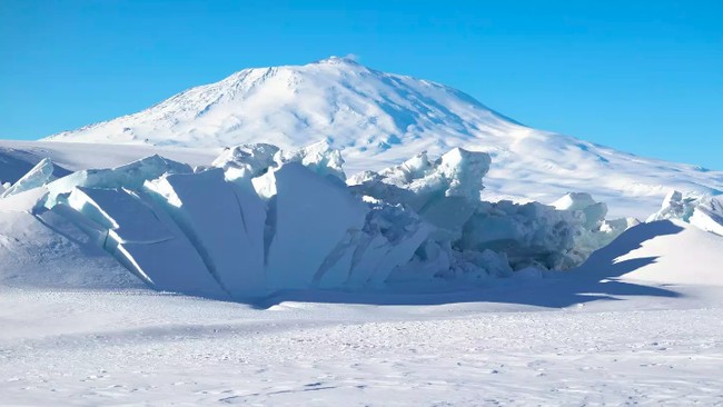 Erebus adalah gunung berapi tertinggi kedua di Antartika. Gunung itu memuntahkan emas setiap hari.