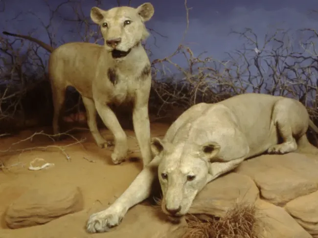 Puluhan orang tewas dimangsa dua ekor singa jantan di masa silam. Teror dua singa itu terjadi saat pembangunan jembatan kereta di atas Sungai Tsavo tahun 1898.
