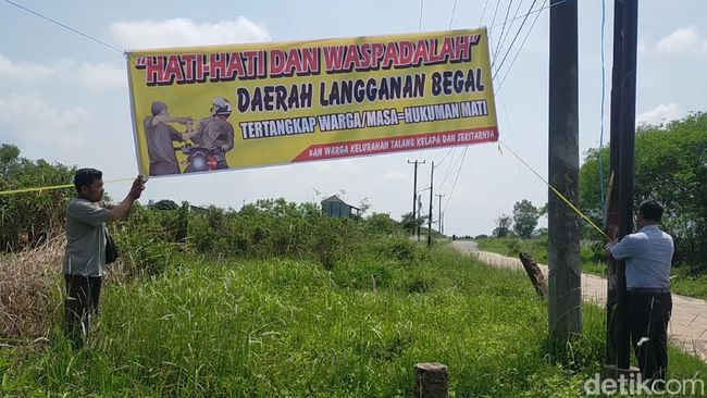 "Ini (spanduk) dipasang sebagai bentuk antisipasi warga, karena aksi begal sudah sering kali terjadi. Diharapkan warga yang melintas dapat berhati-hati," kata Tatang Purba, perangkat RT setempat.