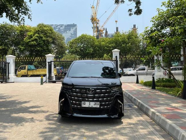 Mobil Alphard berpelat 'AD 1 JKW' itu berkelir hitam. Mobil tersebut terparkir di halaman.