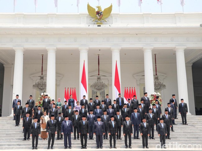 Pelantikan 46 menteri kabinet Merah Putih digelar pada Senin (21/10), pukul 10.00 WIB. Prabowo melantik para menterinya itu di Istana Negara, Jakarta, didampingi oleh Wakil Presidennya, Gibran Rakabuming Raka.