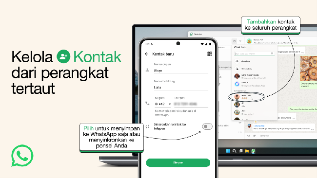 Sebentar lagi, pengguna dapat menambahkan dan mengelola kontak secara langsung dari WhatsApp Web dan windows atau perangkat lainnya. Kontak yang disimpan nantinya dapat dipulihkan jika kehilangan ponsel atau berganti perangkat.