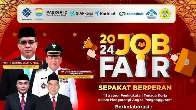 Pemerintah Kota (Pemkot) Palembang membuka lowongan kerja lewat job fair 2024. Bersama 40 perusahaan, Dinas Ketenagakerjaan (Disnaker) Kota Palembang akan membuka bursa kerja dalam mengurangi angka pengangguran di Kota Palembang.