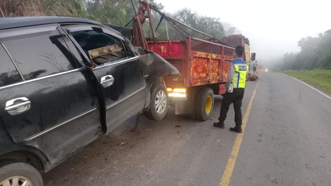 "Mobil Innova melaju dari arah Palembang menuju Jambi. Setibanya di TKP menabrak mobil truk yang mana sopir truk tersebut sedang mengganti ban sebelah kiri," ujarnya.