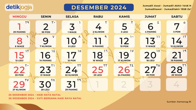 Adapun rincian jadwal libur bulan Desember 2024 sebagai berikut: