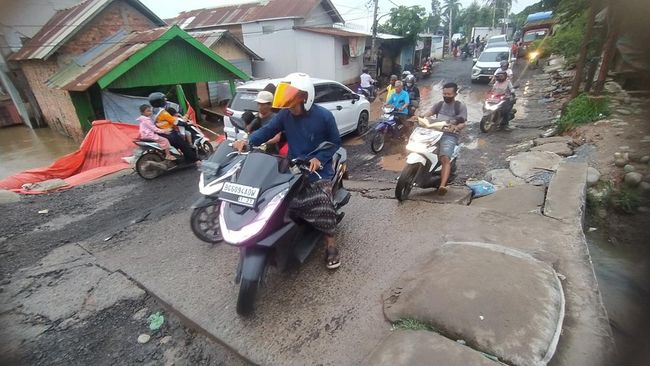"Sudah ada upaya dari pemerintah, seperti menimbun. Karena truk yang lewat setiap hari serta genangan air yang terus datang, jalan kembali amblas," katanya.