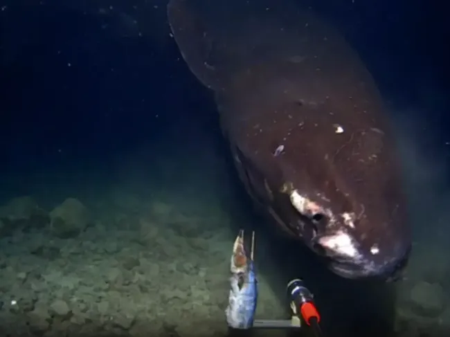 Untungnya bagi para ilmuwan, hiu tersebut segera beralih ke ikan yang mereka taruh di samping kamera sebagai umpan, sehingga tidak sampai merusak kamera laut dalam yang dijatuhkan ke kedalaman. Setelah mengunyah umpan yang terpasang pada perangkat kamera, hewan raksasa itu kemudian berenang menjauh, memberi gambaran yang bagus tentang seberapa besar hiu itu.