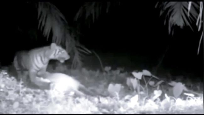 Beredar rekaman Harimau Sumatera memangsa seekor sapi milik warga Kabupaten Pesisir Barat, Lampung. Tim Penanganan Konflik Hewan Liar pun bergerak memasang ranjau perangkap.