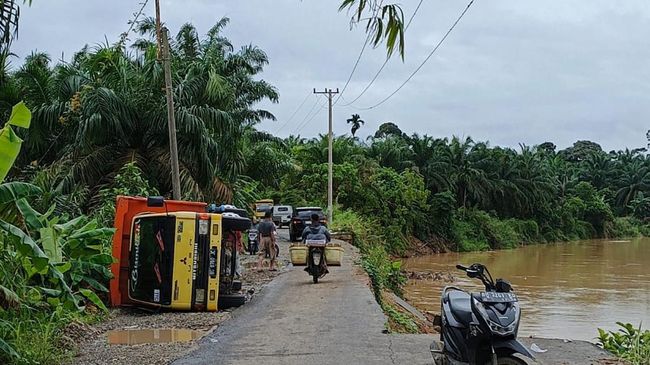 "Dia itu jalannya kan terlalu pinggir karena takut kalau dekat dengan sungai nanti jeblos. Ternyata jalan di pinggir itu tanahnya tidak terlalu kuat karena itu baru ditimbun tanah dan mobil itu ada muatan sawitnya," jelasnya.