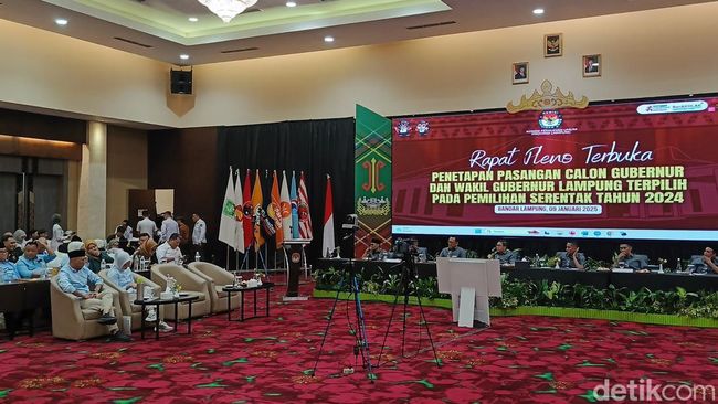 Komisi Pemilihan Umum (KPU) melaksanakan pleno penetapan pasangan calon Gubernur dan Wakil Gubernur Lampung terpilih. Paslon Rahmat Mirzani Djausal-Jihan Nurlela resmi menjadi pemenang pada Pilgub 2024.