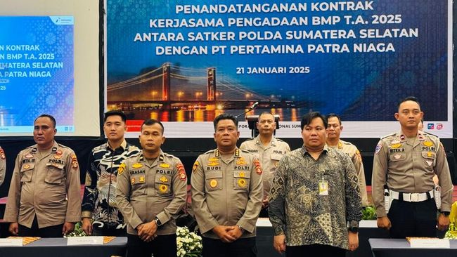 Polda Sumsel dan PT Pertamina Patra Niaga Sumatera Selatan sepakat menjalin kerja sama pembelian Bahan Bakar Minyak dan Pelumas (BMP) tahun anggaran 2025 dengan kontrak senilai Rp 74 miliar.
