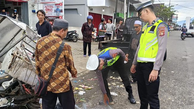 "Setibanya di TKP, mobil menabrak sepeda motor penjual sayur (Mustofa) yang parkir di pinggir jalan sebelah kiri dan menabrak pejalan kaki yang lagi membeli sayur (korban NP)," katanya.