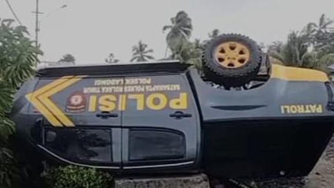 "Mobil patroli ini selip dan terbalik. Mobil mengalami pecah ban saat hendak melambung," katanya, kepada detikcom, Minggu (26/1/2025).