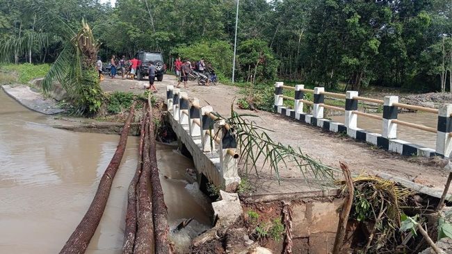 "Iya jembatan penghubung Desa Pangkul dan Karang Jaya amblas bagian pangkalnya dan nyaris putus. Hanya kendaraan roda dua yang bisa melalui jembatan tersebut, roda empat tak bisa melintas," ujar Kepala BPBD Prabumulih, Sriyono, Selasa (28/1/2025).