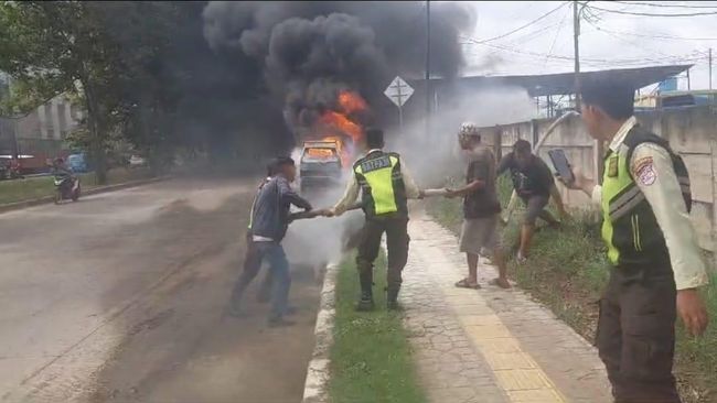 Dari video yang dilihat detikSumbagsel, tampak mobil pikap biru tersebut sudah terbakar. Tak hanya itu, api juga menjalar hingga ke badan jalan. Terlihat juga pengemudi mobil keluar menjauhi mobilnya yang terbakar.