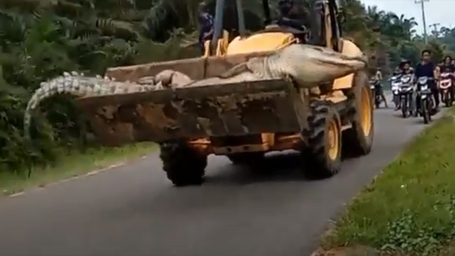 Setelah mati, buaya itu diangkut menggunakan buldoser. Sebab, lokasi penguburannya cukup jauh. Kemudian penggalian lubangnya juga menggunakan alat berat itu.