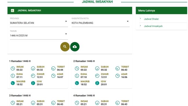 Inilah link unduh jadwal imsakiyah Ramadhan 1446 H/2025 M untuk seluruh wilayah di Indonesia: