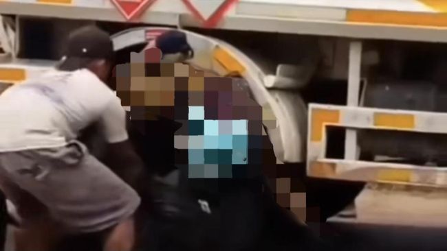 Dari video yang dilihat detikSumbagsel tampak dua orang berusaha membantu korban, yang pada saat itu masih dalam keadaan terjepit di ban belakang truk.