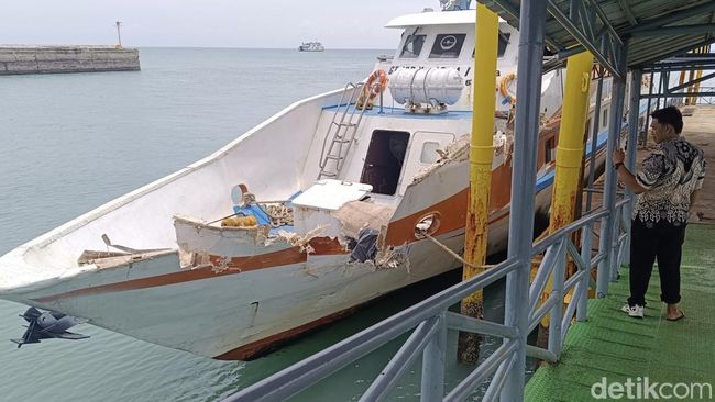 "Jadi pada saat mau bersandar kapal tersebut mengalami masalah di handle engine (maju-mundur). Sehingga kapal tidak bisa dikendalikan, artinya kapal masih dalam posisi bergerak, tidak bisa setop sehingga menabrak dermaga," tegasnya.