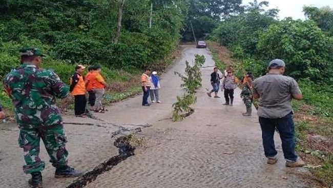 "Untuk jalan yang retak tidak bisa lagi dilalui kendaraan roda empat. Untuk kendaraan roda dua masih bisa melintas, namun harus tetap berhati-hati," katanya.