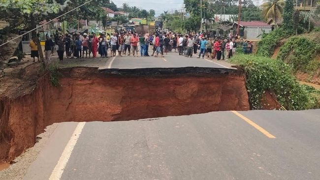 Titik jalan putus itu tepatnya di Dusun Siri Sekapur, Kecamatan Jujuhan, Bungo. Jalan tersebut amblas diterjang banjir sejak Minggu (2/3/2025) siang. Putusnya jalan di dekat perbatasan Bungo dengan Kecamatan Sungai Rumbai, Dharmasraya, Sumbar.