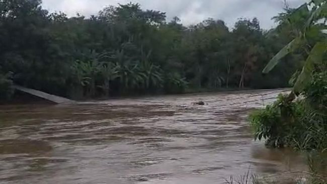 Jembatan gantung di Kabupaten Ogan Komering Ulu (OKU) Timur, Sumatera Selatan (Sumsel), ambruk setelah debit air Sungai Komering meningkat. Dalam kejadian itu, tidak ada korban jiwa, hanya saja dua motor milik warga hanyut.