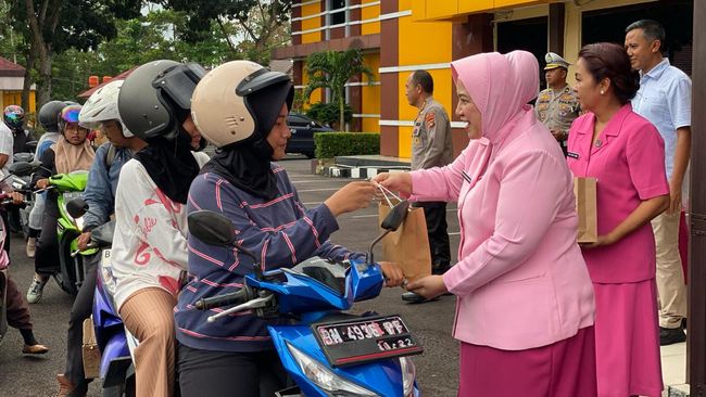 Pantauan detikSumbagsel Kamis (6/3/2025) petang, pembagian paket takjil dilakukan tepat di halaman Mapolda Babel. Pembagiannya mirip drive thru atau pesan makan tanpa harus turun dari kendaraan.