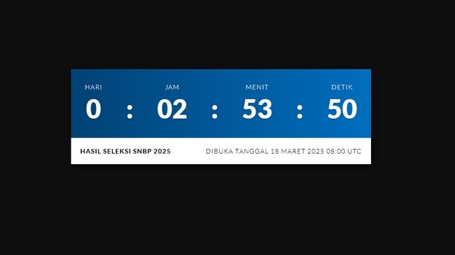 Pendaftaran SNBP telah berakhir pada Februari lalu dan hasil seleksi akan disampaikan secara online melalui portal SNPMB pada link https://pengumuman-snbp.snpmb.id/. Tersisa beberapa jam lagi, pengumuman SNBP 2025 dapat diketahui.