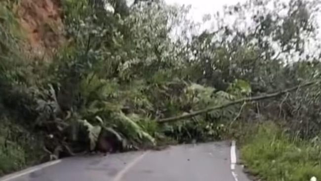 Material tanah longsor tersebut menutupi badan jalan sehingga jalan lumpuh total dan tidak bisa dilewati. Kondisi ini membuat kendaraan menumpuk di jalur tersebut.