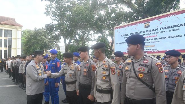Apel gelar pasukan dilakukan di Mapolda Jambi, Kamis (3/4/2025), yang dipimpin oleh Wakapolda Jambi Brigjen Mirza Mustaqim. Para personel itu langsung digeser ke Bungo untuk mengamankan 21 TPS yang akan melaksanakan PSU.