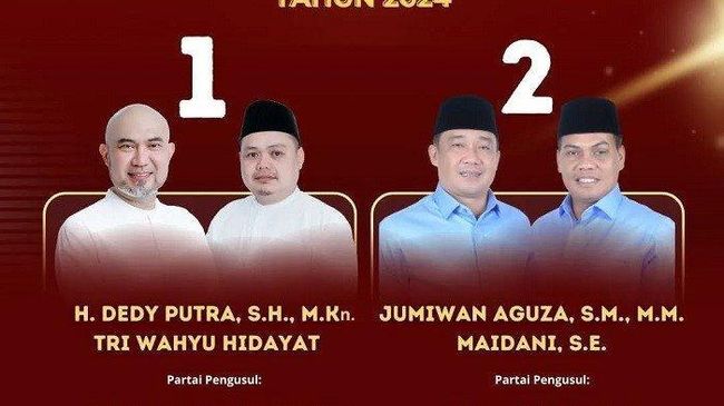 Pasangan Dedy Putra-Tri Wahyu Hidayat unggul sebanyak 95.844 suara saat digabungkan hasil PSU 21 di TPS, sedangkan pasangan Jumiwan Aguza-Maidani meraih 95,624 suara. Selisih suara kedua paslon ini hanya berselisih sedikit yakni hanya sekitar 220 suara.