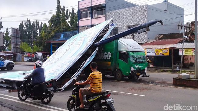 "Akibat tiang reklame itu pun roboh dan menimpa mobil ekspedisi tersebut dan menutupi separuh badan jalan," jelasnya.
