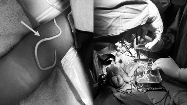 Lalu pasien berkonsultasi ke bagian bedah anak untuk dilakukan laparotomi eksplorasi. Selama operasi, dokter menemukan tiga lokasi obstruksi usus di sepanjang ususnya. Selanjutnya, operasi dilakukan untuk mengeluarkan cacing di perutnya.