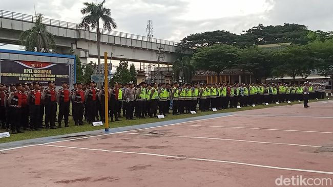 Pantauan detikSumbagsel, ratusan personel kepolisian mengikuti Apel Persiapan Pengamanan Ibadah dan Perayaan Paskah 2025 di Mapolrestabes Palembang, Kamis (17/4) sore. Apel ini dipimpin langsung oleh Wakapolrestabes Palembang AKBP Andes Purwanti.