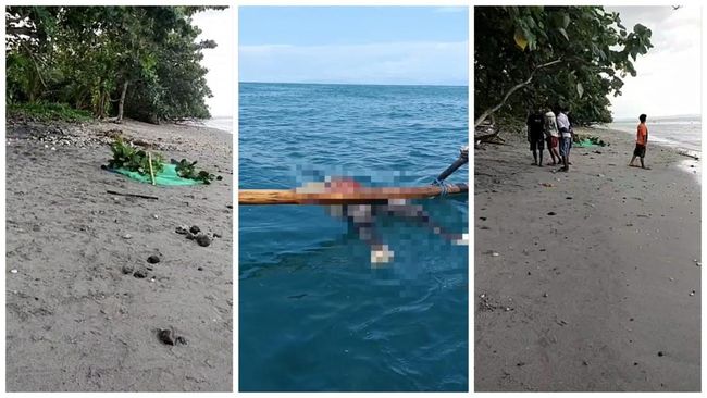 Usai ditemukan, nelayan kemudian membawa mayat tersebut ke pinggir pantai untuk kemudian dievakuasi oleh petugas dari kepolisian.