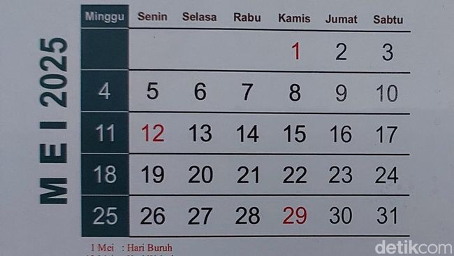 Selain libur tanggal 1 Mei, pemerintah menetapkan beberapa jadwal tanggal merah dan cuti bersama. Dalam Surat SKB 3 Menteri, pemerintah menetapkan tanggal 12 dan 29 sebagai libur nasional. Lalu, 13 dan 30 Mei cuti bersama. Berikut rincian jadwal libur Mei 2025: