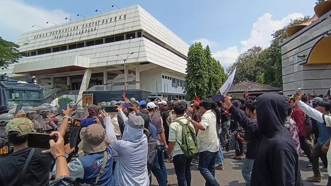 Unjuk rasa yang berlangsung di Kantor Pemerintah Provinsi Lampung ini telah memanas sejak pagi.