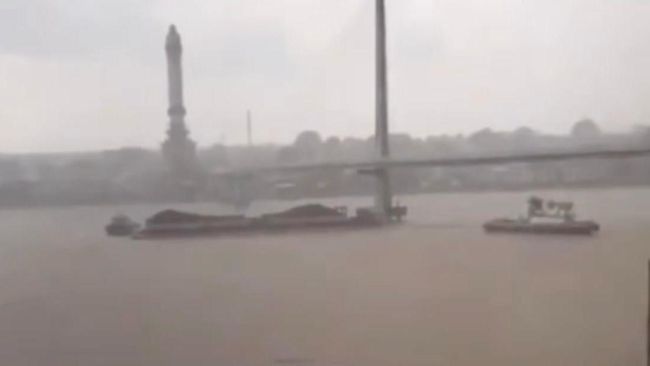 Dalam video yang beredar, terlihat tongkang bermuatan batu bara itu menyenggol tiang fender jembatan dan sempat membuat warga sekitar panik.
