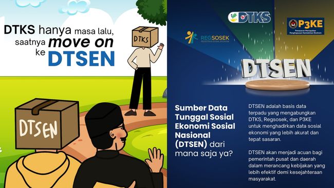 Dilansir laman Kemensos, DTSEN merupakan basis data terpadu yang menggabungkan berbagai data sosial dan ekonomi penduduk Indonesia termasuk data dari Regsosek (Registrasi Sosial Ekonomi) dan P3KE (Pemetaan Potensi Pembangunan Keluarga).