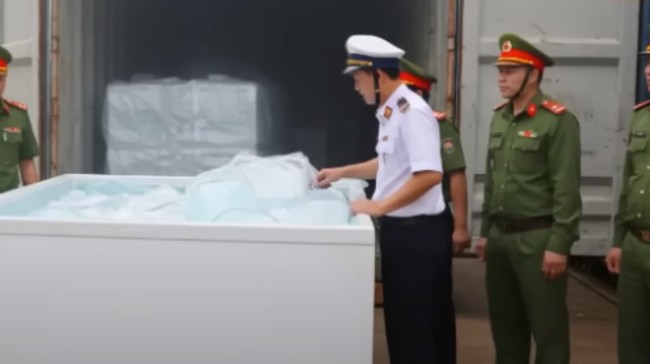 Petugas menemukan satu peti es besar yang mencurigakan di dalam kontainer yang hampir membeku. Peti tersebut dibungkus dengan lapisan plastik dan baja tipis.
