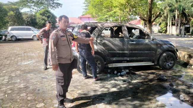"Namun sesaat setelah kontak dan mesin mobil mati, diketahui adanya api pada bagian belakang mobil yang diduga adanya korsleting kabel listrik dari sound sistem variasi tambahan. Melihat api sudah besar, datang dua saksi yang kemudian menghubungi Polsek Kalidoni dan PBK," katanya.