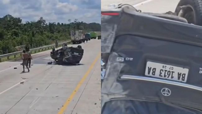 Dalam video yang beredar, terlihat mobil Innova nopol BA-1613-BA tersebut terguling dan sopir diketahui melarikan diri. Sejumlah pengendara tampak mendekat ke mobil yang terguling itu, dan arus lalu lintas masih tampak normal.