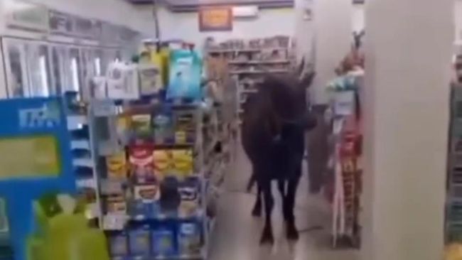 Destri mengatakan, sapi tersebut tidak mengacak-acak isi toko. Dari video yang dilihat detikSumbagsel, hewan berwarna cokelat dengan tali di hidungnya tersebut berdiam di tengah rak makanan ringan dengan ekor bergoyang.