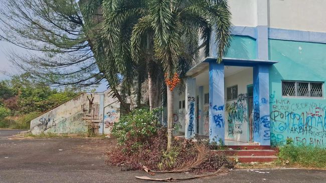 Selain kaca jendala yang banyak pecah dan gedung yang jebol serta banyak coret-coretan, terlihat banyak rerumputan, pohon liar, dan ilalang yang tumbuh di area sport center tersebut.
