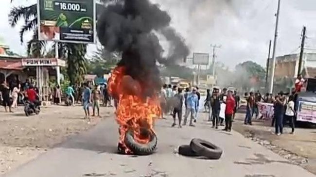 Demo itu pun sempata memanas setelah massa mulai melakukan aksi pemblokiran di Jalan Lintas Sumatera (Jalinsum) yang berada di simpang tiga Pasar Surulangun dengan cara membakar ban di tengah jalan.